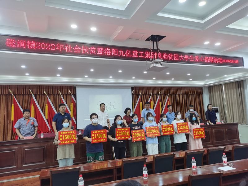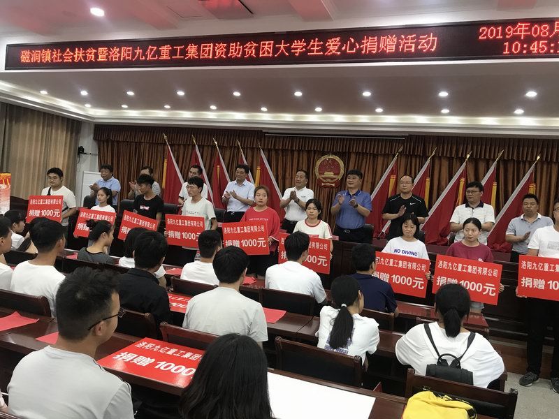 愛是與生俱來的,在血液里流動,在骨子里結(jié)晶,它源源不斷的由心而生,永不枯竭,只要人人都愿意奉獻一點愛,就如甘霖沐浴大地,人間處處盛開幸福之花! 為響應洛陽市政府精準扶貧政策,洛陽九億重工集團有限公司及董事長王九茂積極參與捐資助學的慈善義舉活動,特做出如下決定:1、公司幫扶磁澗鎮(zhèn)2017年新招貧困大學生21名順利入學,每人資助2000元,總計肆萬貳仟元整; 2、總經(jīng)理王九茂(縣政協(xié)委員)以個人名義資助磁澗鎮(zhèn)南窯村2017年新招大學生6名,總計12000元整; 我相信,在社會各界的大力支持和共同努力下,我們的“愛心助學”活動將會惠及到更多的同學,為了夢想,刻苦讀書、報銷祖國,廣大同學也一定會在溫暖的社會大家庭里茁壯成長,必將成為國家建設的有用之才! 洛陽九億重工集團有限公司 董事長:王九茂